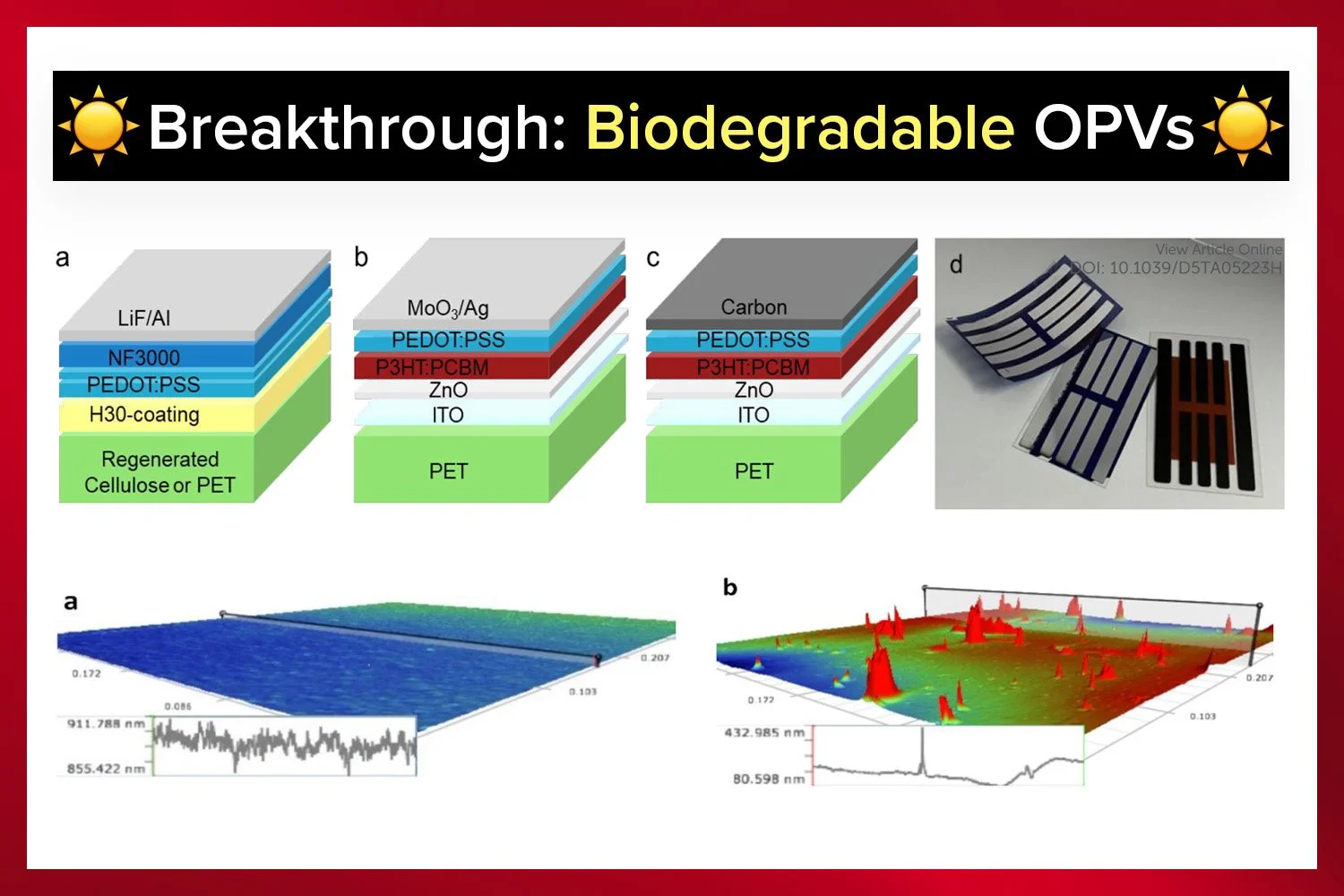 The researchers focused on two of the most environmentally challenging parts of OPVs: the substrate and the electrode. Both are typically made from materials that are non-biodegradable or resource-intensive to produce.