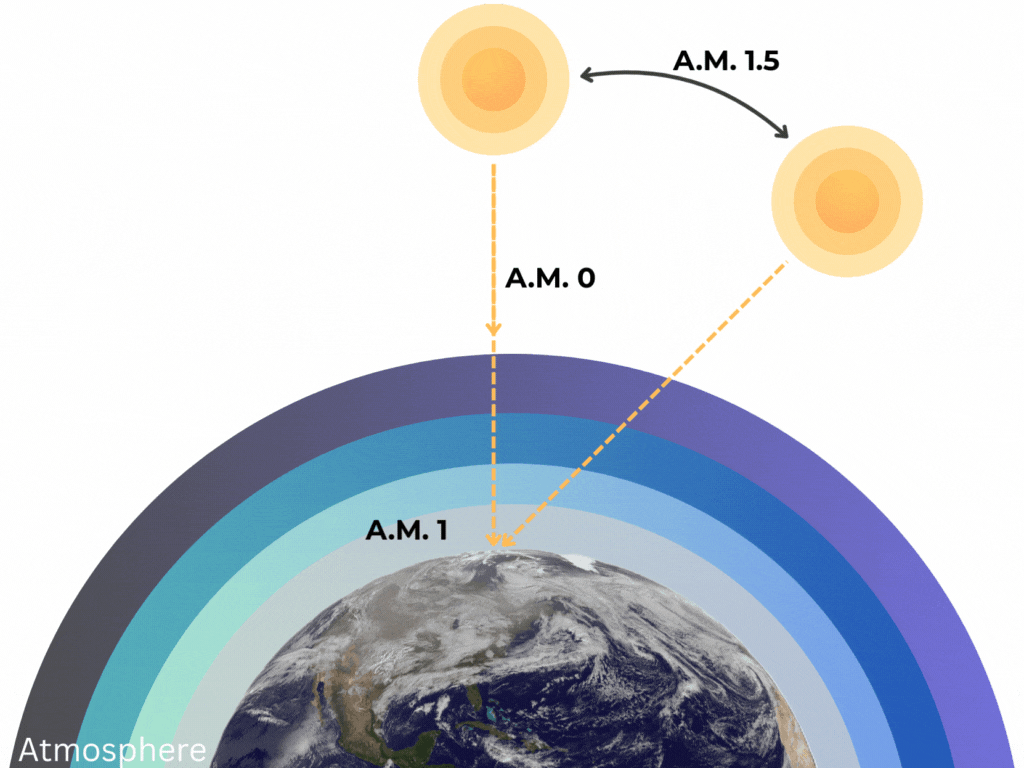 A key concept here is Air Mass (AM). This refers to the path length sunlight travels through Earthβs atmosphere, which depends on the angle of the Sun in the sky. For example: